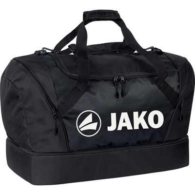 Du bist auf der Suche nach einer neuen Sporttasche, die nicht nur optisch gut aussieht sondern auch funktionell ist? Dann ist diese Sporttasche von JAKO genau das Richtige für dich. Der größenverstellbare und abnehmbare Schultergurt lässt sich optimal auf deine Größe einstellen. In den Größen M und L ist die Sporttasche in vier verschiedenen Farben im JAKO Onlineshop erhältlich. Im geräumigen Hauptfach mit umlaufenden 2-Wege-Reißverschluss ist genügend Platz für Sportbekleidung und Equipment. Deine Schuhe kannst Du separat von der Kleidung im 14 cm hohen Bodenfach transportieren. So gelangen Schmutz und Gerüche nicht an die frische Kleidung. Zusätzlich zum Bodenfach befinden sich rechts und links jeweils eine Seitentasche mit Reißverschluss. Die rechte Seitentasche ist ein