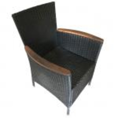 Das Gestell ist aus pulverbeschichtetem Stahl gefertigt. Die Bespannung besteht aus strapszierfähigem Polyrattan, braun. Die Armlehnen sind aus Akazienholz gefertigt. >