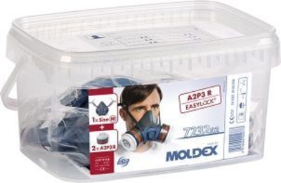 Atemschutzbox 7232 Atemschutzbox »7232«/»7432« Eigenschaften:• Extrem leichte Maske (98–100g)• Einfache Wartung und Reinigung durch leicht zugängliche Bauteile und klare Formen• Maskenkörper aus thermoplastischem, hautverträglichem TPE• Easy Lock® Filtersystem erfordert keine Adapter und Zusatzteile: Partikelfilter lassen sich mit Easy Lock® Gaskartuschen oder direkt mit dem Maskenkörper verbinden• Sicher und komfortabel mit anatomischem Dichtlippendesign• Vereinfachte Handhabung, Bedienung und reduzierte Lagerhaltung•100 % PVC-frei Bestehend aus:• Atemschutzbox• Ein Maskenkörper Größe M (7002, wiederverwendbare Mehrweg-Halbmaske)• Zwei Kombifilter A2P3R / ABEK1P3 R Zulassung/ Norm: EN 140:1998, EN 14387:2004 + A1:2008, EN 143:2000 + A1:2006