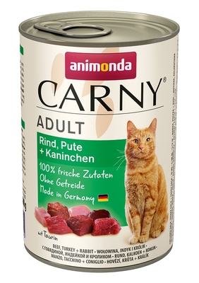 Cat Carny Adult Carny® Adult steht für ausgewogene, leckere, gesunde Ernährung auf höchstem Niveau für ausgewachsene Katzen von 1 - 6 Jahren. Die ausgewählten, frischen fleischlichen Rohstoffe garantieren den unvergleichlichen Geschmack, den Katzen überaus schätzen. Carny Adult versorgt die ausgewachsene Katze mit allen lebenswichtigen Nährstoffen.- Breite: 7, 5 cm, - Fütterungsempfehlung: Gewicht der Katze / g pro Tag; 3kg / 175 g; 4kg / 200 g; 5kg / 245 g, - Gewicht: 0, 4 kg, - Höhe: 10, 8 cm, - Länge: 7, 5 cm, - Produktart: Katzenfutter