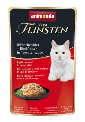 Cat Vom Feinsten AdultVom Feinsten mit feinen Filets im Frischebeutel steht für kulinarische Leckerbissen auf höchstem Niveau für ausgewachsene Katzen. Zarte Streifen aus feinstem Filet kombiniert mit exquisiten Beilagen wie Rindfleisch, Calamari oder Käse in feinsten Saucen garantieren einen unvergleichlichen Genuss.- Breite: 8, 5 cm, - Fütterungsempfehlung: Gewicht der Katze / g pro Tag; 3 - 5kg / 100 - 200 g, - Gewicht: 0, 05 kg, - Höhe: 13, 4 cm, - Länge: 1, 5 cm, - Produktart: Katzenfutter