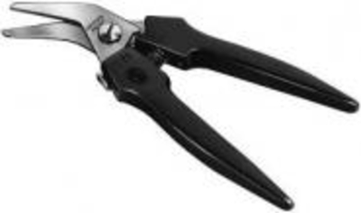 Combi-Schere 185 mm abgewinkelt Erdi Kombischere D48A, abgewinkelt• Klingen aus rostfreiem Edelstahl• Obere Schneide glatt, untere Schneide verzahnt• Griffe mit Weichstoffeinlage und Abgleitschutz• Mit Ã-ffnungsfeder und Verschlussriegel• Zum Schneiden von Papier, Pappe, Stoff, Feinblech, Leder, Schnur usw.- Länge: 190 mm
