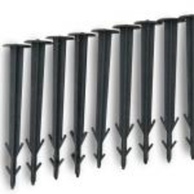 Aus stabilem Kunststoff, mit Widerhaken für eine sichere Verankerung von Vliesen und Folien im Erdreich.