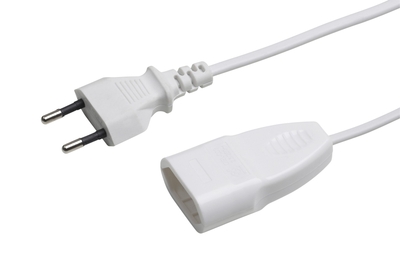 Euro-Verlängerung weißEuro-Verlängerung 3m weiß, Kabel H03VVH2-F 2x0, 75 mm², schutzisoliert, Länge: 3m, zur Anwendung nur im trockenen Innenbereich, 2, 5A, 250V~Dichtschelle