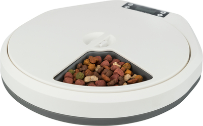 Futterautomat TX4+1 Fütterungsintervall einstellbar (bis zu 4 Mahlzeiten pro Tag) für 4+1 Mahlzeiten à 0, 25 l auch für Nassfutter geeignet Futterschalen spülmaschinengeeignet batteriebetrieben (4 AA-Mignon-Batterien nicht enthalten) Kunststoff