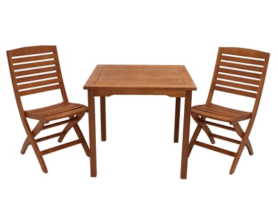 Garnitur 3-teilig, Eukalyptus geölt Gartengarnitur 3-teilig (2x Klappsessel, 1x Tisch 75x 75cm quadratisch), Eukalyptus geölt.- Gewicht: 22 kg,