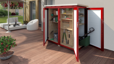 Garten [Q] Teras, schwedenrot Der WEKA Garten [Q] Teras ist ein echtes flexibles Raumwunder und passt mit seiner modernen Optik auf jede Terrasse. Optimale Stabilität erhält der Schrank durch 18 mm starke OSB-Platten für Boden und Dach. Zusätzlich ist eine hochwertige, selbstklebende Dachbahn zum Schutz vor UV-Strahlung und Witterungseinflüssen inklusive. Dank individuell einstellbarer Regalböden können Sie den Schrank nach Ihren Bedürfnissen gestalten und nutzen. Zudem zeichnet sich der Schrank durch hohe Funktionalität aufgrund des Zugriffs von zwei oder drei Seiten aus. Er bietet viel Stauraum bei geringem Platzbedarf. Die strukturierte Inneneinrichtung hilft Ihnen Ordnung zu schaffen und ermöglicht Platz für Rasenmäher, Grill, Sitzpolster und viele mehr.- Farbe: Europäische Fichte,