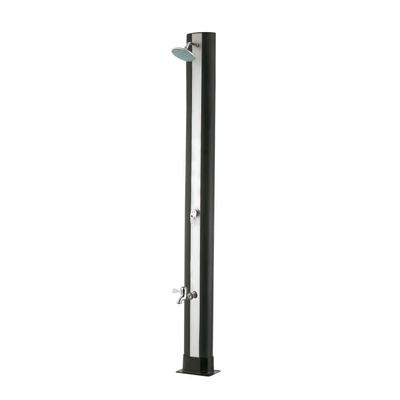 ...Duschsäule aus schwarzem Aluminium, das das Aufheizen des Wassers durch Sonneneinstrahlung ermöglicht. Zum