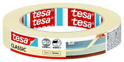 Malerband Classic Das tesa® Abklebeband CLASSIC eignet sich für alle Anwendungen im Innenbereich und sorgt für gerade Farbkanten auf glatten und leicht unebenen Untergründen.- Breite: 19 mm,