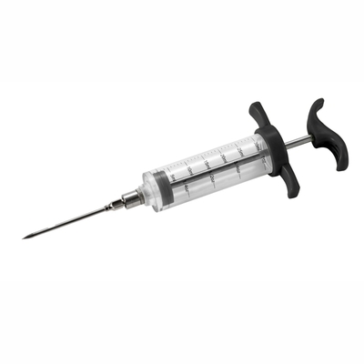 Marinierspritze Die Marinade kann mit der Nadel direkt in das Fleisch gespritzt werden: für intensiveres Aroma und kürzere Marinierzeit. Das Volumen der Spritze beträgt 50 ml und die Skala ist in ml und fl oz. Die Abnehmbare Nadel ist mit einem Schnellverschluss verstehen. Material: Glas Metall Kunststoff ...