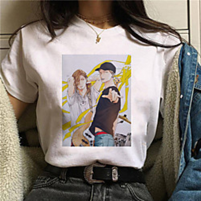 Baumwollmischung Druck Harajuku Grafik Kawaii T-shirt Für Damen /
