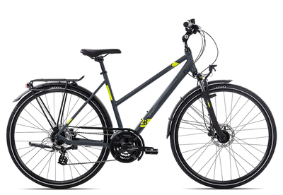 2R Manufaktur TRX21 Trapez 2022 28 Zoll grey matt /grey/neon yellow 46 cm Radgröße: Das TRX21 Trekkingbike der 2R Manufaktur punktet mit einer hydraulischen Scheibenbremse, 21 Gängen und einer besonders hellen Lichtanlage. Die 24-Gänge der Shimano Kettenschaltung bietet dir ein breites Übersetzungsspektrum für deine Fahrten. Das Altus 7-fach Schaltwerk wird dabei sportiv per Shimano Acera Schalthebel bedient. So versorgt dich das TRX21 mit jeder Schaltperformance für schnelle Ampelsprints oder lange Touren im Hügell&. Für eine sichere und gut dosierbare Bremswirkung ist am 2R Manufaktur TRX21 eine Tektro Scheibenbremse mit Hydraulik verbaut. Die höhere Bremsleistung gegenüber einer klassischen Felgenbremse wirst du nicht nur auf nasser Fahrbahn zu schätzen wissen. Eine einstellbare Federgabel, Mehrkomponenten-Griffe, ein sportiver Touren-Sattel sowie ein winkelverstellbarer Lenkervorbau sorgen für Komfort und lassen dich auch längere