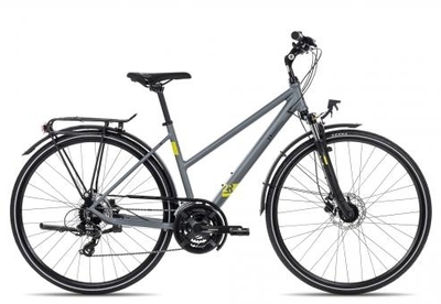 2R Manufaktur TRX21 Trapez 2022 28 Zoll grey matt /grey/neon yellow 51 cm Radgröße: Das TRX21 Trekkingbike der 2R Manufaktur punktet mit einer hydraulischen Scheibenbremse, 21 Gängen und einer besonders hellen Lichtanlage. Die 24-Gänge der Shimano Kettenschaltung bietet dir ein breites Übersetzungsspektrum für deine Fahrten. Das Altus 7-fach Schaltwerk wird dabei sportiv per Shimano Acera Schalthebel bedient. So versorgt dich das TRX21 mit jeder Schaltperformance für schnelle Ampelsprints oder lange Touren im Hügell&. Für eine sichere und gut dosierbare Bremswirkung ist am 2R Manufaktur TRX21 eine Tektro Scheibenbremse mit Hydraulik verbaut. Die höhere Bremsleistung gegenüber einer klassischen Felgenbremse wirst du nicht nur auf nasser Fahrbahn zu schätzen wissen. Eine einstellbare Federgabel, Mehrkomponenten-Griffe, ein sportiver Touren-Sattel sowie ein winkelverstellbarer Lenkervorbau sorgen für Komfort und lassen dich auch längere ...