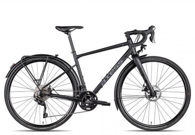 Die Züge, die komplett im leichten Aluminiumrahmen verlegt sind, tragen nicht nur zur schlanken Optik bei, sondern schützen auch vor Schmutz und sorgen so über lange Zeit für eine zuverlässige Schaltleistung., Einen passenden Ständer bestellst du am besten auch gleich mit, wenn du magst., Die robuste, mechanische Tektro Spyre Bremse sorgt mit 160 mm Scheiben für gute Bremsleistung, auch abseits asphaltierter Straßen., In dieser EQ-Version des Creed bekommst du Lichtanlage, Nabendynamo, Schutzbleche und Gepäckträger bereits ab Werk montiert., Für aktive Pendlerfahrten und sportliche Wochenendabenteuer auf groben Untergründen, ist das Axess Creed EQ dein ideales Einstiegs-Gravelbike., Mit der profilierten Schwalbe G-One 40-622 Bereifung ist das Axess Creed EQ Gravelbike bestens für Abenteuer auf Schotterpisten ausgestattet., Das St VZO-konform ausgestattete Axess Creed EQ Gravelbike verfügt über eine Shimano GRX 400 Gravel-Schaltgruppe mit