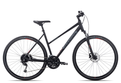Axess Veris Cross Trapez 2020: Dasleichte Axess Veris Crossrad überzeugt mit 9-fach Deore Schaltwerk undhydraulischen Scheibenbremsen von Shimano, sowie einer Lockout-Federgabel von SR Suntour. Ideal für schnelle Sprints, auch wenn das Gelände etwas gröber wird. Die Shimano Schaltung des Axess Veris liefert Ihnen 27 wählbare Gänge, diesportlich per Shimano Acera Rapidfire Plus Schalthebel durchgeschaltetwerden können. Das 9-fach Schaltwerk stammt sogar aus er hochwertigen Shimano Deore Baureihe. So bietet das leichte Axess Veris Crossbike eine klasse Schaltperformance und eine große Gangauswahl für lange Biketouren. Und wenn Sie das schnelle Axess Crossbike doch einmalverzögern wollen, greifen die hydraulischen Shimano Scheibenbremsen, selbst bei Nässe, kraftvoll und leicht dosierbar zu. Angenehme Griffe und ein sportlich-bequemer Sattel ermöglichen auch ausgedehntere Touren und die 63 mm SR Suntour NEX dämpft Stöße und