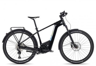 Die Geometrie eines E-Hardtails und ein leistungsstarker MTB-Antrieb gemixt mit der Alltags- und Tourentauglichkeit eines Trekkingpedelecs: Das Bergamont E-Revox PRO EQ., Zur rundum straßentauglichen Ausstattung dieses Bergamont E-ATBs, gehören ein Syncros Ständer, ein Racktime 2.0 kompatibler Klick-Gepäckträger und eine Lichtanlage mit 110 Lux Scheinwerfer., So kann auch auf Feldwegen richtig Fahrt aufgenommen werden., Dafür bieten die 120 mm SR Suntour XCR34 Gabel, die hydraulische Scheibenbremse (Shimano BR-MT410) und die 2, 35 Zoll breite Schwalbe Al Grounder Bereifung jede Menge Komfort und Kontrolle., Bergamont E-Revox PRO EQ bringt die Offroad-Power eines E-Mountainbikes auf die Straße., Für die elektrische Fahrunterstützung hat Bergamont dem E-Revox PRO EQ eine Bosch-Kombination aus dem stärksten Performance Line CX Antrieb, einem 625 Wh und dem smarten Kiox 300 Display spendiert., Für die manuelle Übersetzung ist das 11-fach