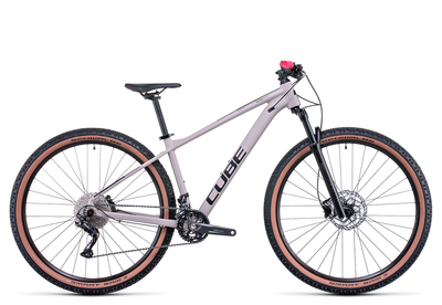 Cube Access WS Race 2022 27.5 Zoll oatgrey´n´raspberry 16 Zoll Radgröße: Das schnelle Cube Access WS RACE Damen-Hardtail mit Rock Shox Federgabel und Deore 2x 11 Schaltung. Dank seiner Offroad-Gene lässt das Access WS RACE Damen-MTB auch Fahrten im gröberen Terrain zu und nimmt Feldwegen den Schrecken. Die stabile Rahmengeometrie (verkürztes Oberrohr speziell für Damen) und die 100 mm Rock Shox Judy Silver Luft-Federgabel ermöglichen diesem Cube Damen-Hardtail gut kontrollierbare Geländequalitäten. Dazu sind die Züge, gut vor Schmutz geschützt, im Inneren des Aluminiumrahmens verlegt.Für einen flotten Vortrieb und ein breites Übersetzungsspektrum sorgt die 2x 11-Gang Shimano Deore Kettenschaltung. 11-fach Schaltwerk, Kurbelgarnitur und Rapidfire-Plus Schalthebel stammen allesamt aus der wertigen Shimano Deore Baugruppe. Und für einen sicheren Stopp ist eine hydraulische Shimano Scheibenbremsanlage an Bord des Cube Access WS RACE.Für eine