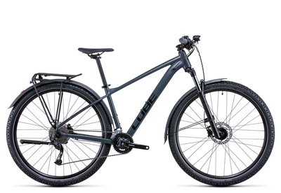 Cube Aim SL Allroad 2022 29 Zoll grey´n´black 22 Zoll Radgröße: Das Topmodell der beliebten Cube Aim Hardtail-Mountainbikes, hier mit St VZO-konformer Alltagsausstattung: Cube Aim SL Allroad. Ein schlanker, leichter, zweifach-konifizierter Rahmen bildet die Basis. Dazu bekommst du eine zuverlässige Shimano Schaltung, eine Federgabel mit Lockout und das Cube Allroad Setup mit fest installierter Lichtanlage (50 Lux Scheinwerfer und Rücklicht im Schutzblech), Seitenständer, Gepäckträger und Schutzblechen. Die hier gezeigte Aim SL Allroad Ausstattungsversion ist unterscheidet sich im Wesentlichen von den anderen Cube Aim Ausstattungsvarianten durch ihre 18-Gang Shimano Schaltung mit Alivio Shadow Schaltwerk und einer 100 mm SR Suntour XCM Federgabel mit Remote-Lockout. Dank dieser kannst du das Eintauchen der Rohre einfach vom Lenker aus feststellen und verschwendest keine Tretenergie an die Gabel. Perfekt am Berg oder wenn du richtig Tempo