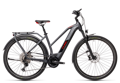 Cube Kathmandu Hybrid SL 625 Trapez 2021: Das hochwertig bestückte E-Trekkingrad CUBE KATHMANDU HYBRID SL 625 wendet sich an eine große Interessentengruppe. Kräftige Elektrounterstützung samt High End Ausstattung in vielfältigen Rahmenformen für altersunabhängige Mobilität. Dieses Pedelec bietet dir dank Bosch Performance Line CX GEN 4 Antrieb mit 85 Nm Drehmoment hohe Reserven. Der Bosch Power Tube Akku mit 625 Wh ruht geschützt im Aluminium Superlite Gravity Casting Unterrohr. Dennoch ist der Akku leicht zugänglich über die Abdeckung mit einzigartiger Arretierung aus dem Motorsport. Ein geniales Bauprinzip das Cube hier anwendet. Die Rock Shox Rekon Silver RL Federgabel bietet selbst im harten Offroad Bereich beim MTB bestes Ansprechverhalten und besitzt, für die Trekkingrad Sparte unüblich, sogar 100 Millimeter Hub. Diese Gabel ist einfach im Luftdruck an Fahrergewichte anpassbar. Die 12 Gang Kettenschaltung entstammt dem Shimano
