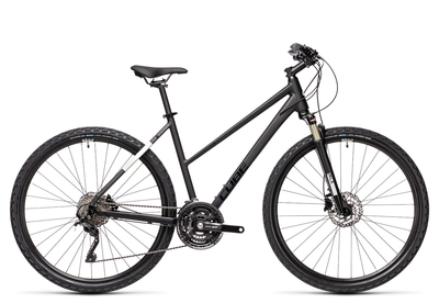 Cube Nature EXC Trapez 2021: Den goldenen Mittelweg flotter Offroad Bewegung bietet das CUBE NATURE EXC. Dieses wertig ausgestattete Crossbike ist genau richtig für alle Radsportler, die nicht die bullige Mountainbike Optik bevorzugen. Trotzdem ist es aber auch nicht nur auf Straßen einsetzbar. Es bietet die perfekte Grundlage für sportive Ausflüge in die Natur mit seinem leichten Aluminium Superlite Trekking Rahmen. Das CUBE NATURE EXC ist ein schlanker Vertreter flotter Geländebikes. Die Bedienlogik vom MTB bietet dennoch schnell und bequem beste Beherrschbarkeit auf rauen Strecken. Das CUBE NATURE EXC besitzt die SR Suntour NCX E RL Luftfedergabel mit Lock Out Funktion, vom Lenker aus bedienbar. Extrem solide Shimano Antriebstechnik kommt bei der langlebigen Kettenschaltung mit 30 Gängen zum Einsatz aus Deore, sowie XT Parts. Die recht klassische Abstufung an der Kurbel mit 48, 36 sowie 26 Zähnen lässt auch hohe Geschwindigkeiten auf