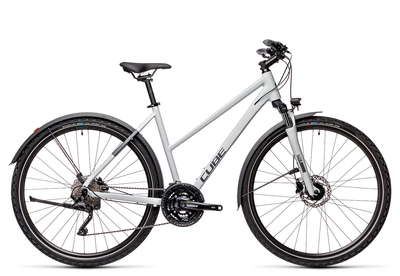 Cube Nature Pro Allroad Trapez 2021: Das CUBE NATURE PRO ALLROAD ist als Crossrad ein echter Allrounder. Das Nature ist immer zur Stelle für Arbeits-, Schulweg oder deine Freizeitaktivität. Die tolle Kombination des robusten Rahmens auf traditioneller 28 Zoll Laufradgröße mit kompletter Lichtanlage macht dieses Off-Road-Bike zum ALLROAD. Der leichte Aluminium Superlite Trekking Rahmen aus wandstärkenoptimierten Rohren bietet eine entspannte Fahrposition. Das CUBE NATURE PRO ALLROAD besitzt Spritzschutzbleche sowie einen Seitenständer für alltägliches Handling. Gespeist wird die serienmäßige LED-Beleuchtung durch den soliden Shimano Nabendynamo. Die SR Suntour NEX Federgabel hat eine Lock Out Funktion, falls es mal nur über Asphalt geht. Haltbare Shimano Antriebstechnik mit Komponenten aus Deore und XT Komponenten bildet die breitbandige 30 Gang Kettenschaltung. Der Off-Road Charakter des NATURE PRO ALLROAD wird durch die hydraulische