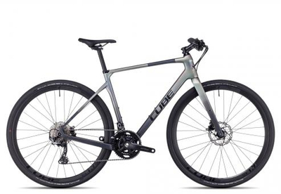 Mit dem edlen Cube Nulane C:62 SLT Carbonbike kannst du in der City mächtig Tempo aufnehmen, ohne gleich ein reinrassiges Gravelbike zu nehmen., Die leichte Carbongabel stellt dazu Montageoptionen für Lowrider Gepäckträger bereit., Dank Carbonrahmen ist das Nulane C:62 SLT ab Werk nur knapp über 9 Kilogramm leicht., Gravel-like kommen die Schwalbe G-One Bereifung, die Shimano Hydraulikbremse und die Shimano GRX-Schaltung., Vorne mit 46/30 und hinten mit 11-34 Zähnen, bekommst du am Nulane C:62 SLT 22 wählbare Gangstufen für jede Fahrsituation., Nahe am Gravelbike, aber mit geradem Lenker: Das superleichte Cube Nulane C:62 SLT.