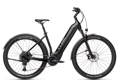 Cube Nuride Hybrid EXC 625 Allroad 2021: Mit dem Nuride Hybrid EXC 625 Allroad verbindet Cube die Geländeeigenschaften eines E-Mountainbikes, den Komfort eines tiefen Rahmeneinstiegs und die Stadttauglichkeit eines City-E-Bikes.Das elektrische Herzstück des Cube Nuride Hybrid EXC E-Mountainbikes bildet der neuste Bosch Performance Line CX Motor der 4. Generation, welcher dich bis mit zu 85 Nm voranschiebt. Das E-Paket dieses stadttauglichen 29er E-Hardtails, wird mit dem großen Intuvia Display, einem besonders ausdauernden und wunderbar komplett im Rahmen integrierten 625 Wh PowerTube Akku und dem schnellen 4A Ladegerät komplettiert.Aber auch der mechanische Antrieb diese Mountainbike-Tiefeinsteigers kann sich sehen lassen: Die Schaltung kommt aus dem Hause SRAM und das SX Eagle