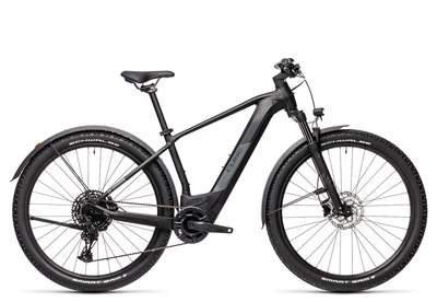 Je nach Rahmengröße greift auch hier der bekannte Size-Split von Cube und rüstet das Reaction Hybrid PRO 500 mit 27, 5 oder 29 Zoll Laufrädern aus., Dank vieler feiner Rahmendetails, kannst du dieses Cube E-Hardtail auch einfach für den Straßenverkehr geeignet aufrüsten., Und um auch auf gröberem Untergrund die Kontrolle zu behalten, ist dieses spaßige E-Mountainbike von Cube mit einer gut einstellbaren und blockierbaren (lockout) 100 mm X-Fusion MIG32 Air Federgabel, sowie mit einer hydraulischen Scheibenbremse von Shimano ausgestattet., Ein robustes E-Hardtail für Freunde der der elektronisch unterstützten Mountainbikes mit Deore Schaltung und einem klasse Rahmendesign: Das Cube Reaction Hybrid PRO 500., Und mit Ständer und Schutzblechen fährt es sich im Alltag einfach angenehmer., In dieser Ausstattungsvariante des Cube Reaction Hybrid bekommst du einen Bosch E-Bike Antrieb mit 85 Nm Performance Line CX Motor, Purion Display und 500 ...