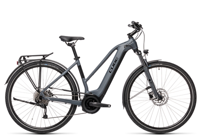 Cube Touring Hybrid ONE 625 Trapez 2021: Das Cube Touring Hybrid ONE 625 ist das Einstiegsmodell in die Touring Hybrid Trekking E-Bike Serie von Cube. Die aufwändige Rahmenkonstruktion des Aluminium Superlite Rahmens wurde per Gravity-Casting Methode elegant um das Bosch Antriebssystem herum entwickelt. Das Ergebnis überzeugt: Ein stabiler und gleichzeitig agiler Aluminiumrahmen mit hervorragenden Fahreigenschaften. Bei der ONE 625 Ausstattungsvariante der Touring Hybrid Serie wird das Herzstück, der leise Bosch Active Line Plus Motor, durch einen besonders ausdauernden 625 Wh Akku mit Energie versorgt. Gegenüber der 500er Version wird diesem Trekking-Pedelec somit eine höhere Reichweite verliehen. Die 9 Gänge des Cube Touring Hybrid ONE werden zuverlässig von einem Shimano Alivio Schaltwerk geliefert. Um den Komfort zu steigern, hat Cube eine gut ansprechende SR Suntour Federgabel mit satten 100 mm verbaut, wie sie sonst eher im