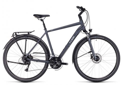 Das Cube Touring ONE Trekkingrad präsentiert sich als vollausgestatteter Begleiter für alle Lebenslagen., Ein nahezu unsichtbarer Kettenschutz, der robuste Gepäckträger und die moderne LED Lichtanlage (Nabendynamo, 50 Lux Scheinwerfer) runden die Alltagstauglichkeit des Cube Touring ONE ab., Ergänzend lässt sich der verstellbare Lenkervorbau passend an deine bevorzugte Sitzposition einstellen, je nachdem ob bei dir etwas komfortabler oder sportlicher gesessen werden soll., Ebenfalls vom Marktführer Shimano, stammt die MT200 Scheibenbremsanlage., Die bewährte Shimano 3x 8 Kettenschaltung liefert dir mit ihrem Acera Schaltwerk insgesamt 24 wählbare Gänge, die du per sportiver Rapid Fire Plus Schalthebel bedienst., Die hydraulische Bremse sorgt für zuverlässige Bremsmanöver, auch wenn die Fahrbahn etwas nasser ist., Die große Gangauswahl ist ideal, wenn du das Cube Touring ONE auch außerhalb der Stadt auf Ausflügen oder im Pendelverkehr