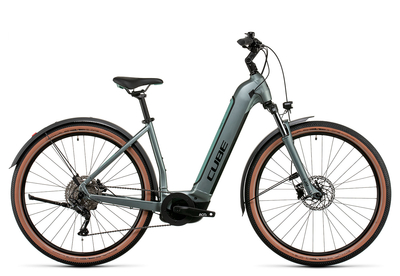 Cube Nuride Hybrid Pro 625 Allroad Wave 2022: Mit dem Nuride Hybrid PRO, kombiniert Cube Eigenschaften von E-Mountainbikes und E-Trekkingbikes. Dank der zusätzlichen Allroad-Ausstattung bekommst du ein St VZO-taugliches Setup mit Licht und Schutzblechen. Das elektrische Herzstück des Cube Nuride Hybrid PRO bildet der leistungsstarke Bosch Performance Line CX Motor. Das E-Paket des komfortablen 29er Pedelecs, wird mit dem kompakten Purion-Display, einem großen und wunderbar komplett im Rahmen integrierten 625 Wh Power Tube Akku und dem kompakten 2A Ladegerät komplettiert. Aber auch der mechanische Antrieb des Tiefeinsteigers kann sich sehen lassen: Die 10-fach Schaltung stammt komplett aus der wertigen Shimano Deore Gruppe und die hydraulischen Shimano Scheibenbremsen verzögern mit 180 mm Discs. Feine Schaltvorgänge und eine gute Verzögerung, sorgen auch ohne die Bosch Unterstützung für jede Menge Fahrfreude. Damit sich auch auf gröbsten