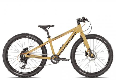 Das Eightshot Coady 24 SL disc zeigt sich als sportives Kinderfahrrad mit MTB-Style., Eine 1-fach Kettenschaltung bietet mit ihren 8 Gängen genügend Übersetzung für die ersten Trailerfahrungen, lässt aber die Schaltmöglichkeiten kindgerecht übersichtlich., Ideal für die ersten Offroadeinsätze., Ein feines, durchdachtes Detail ist das tiefsitzende Tretlager mit angepasster Kurbellänge., Und die grobstolligen Kenda Booster Reifen bieten dafür genügend Grip abseits der Straße., Eightshot bietet mit dem knapp über 10kg leichten X-Coady 24 SL 7 disc eine schöne Mischung aus Robustheit und Leichtigkeit., Trotzdem ist genügend Bodenfreiheit für flotte Geländefahrten vorhanden., Gebremst wird dieses Coady 24 mit einer hydraulischen Promax Scheibenbremse., Klein und fein: Das Eightshot Coady 24 SL disc Kindermountainbike gefällt mit durchdachten Details, einem sportiv designten Aluminiumrahmen und hoher Bremskraft., Der Abstieg fällt gegenüber