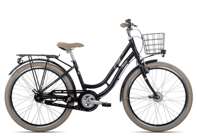 Maxim Anno 1902 Junior 7 24: Mit dem Anno 1902 Junior 7 präsentiert Maxim ein 24 Zoll Kinderfahrrad mit Stil. Angelehnt an das große Anno 1902 Erwachsenen-Citybike, übernimmt die Junior-Variante viele schöne Designelemente des Maxim Klassikers. Lenkerkorb, Gepäckträger, Schutzbleche, Felgen und sogar den fein designten Kettenkasten hat Maxim aufwändig passend zum Rahmen lackiert. Und das Ergebnis kann sich wahrlich sehen lassen. Ebenfalls von den Maxim-Designern stimmig ausgewählt: Selle Royal Sattel, Lederoptik-Griffe und CST Bereifung fügen sich wunderbar in das schöne Farbkonzept ein. Technisch setzt Maxim am Anno 1902 Stadtrad klar auf bewährte Shimano Komponenten. Die Nexus Nabenschaltung bietet mit ihren 7 Gängen bietet jede Menge Übersetzung für die Fahrt durch die Stadt und auf den gemeinsamen Fahrrad-Ausflügen. Geschaltet wird dabei ganz einfach per Drehgriff, der ebenfalls aus der robusten Shimano Nexus Serie stammt. Durch den