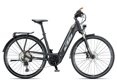 KTM MACINA SPORT 610 Wave 2020: Tourenkomfort auf höchstem Niveau bietet das KTM MACINA SPORT 610. Dieses Trekking-Pedelec bietet Understatement auf allen Radrouten dank jüngstem Bosch Performance CX Antrieb der 4. Generation. Bis zu 85 Nm Drehmoment entfaltet der Motor für die Unterstützung bis 25 km/h. Der Rahmen wirdvon KTM aus 6061er Aluminium als Trekking-Onroad Konzept für dievollständige Integration des 625 Wh leistenden Bosch Power Tube Akkugefertigt. Die Komposition des Rahmens mit hochwertigsten Antriebskomponenten unterstreicht den Anspruch jeglicher Tourencharakteristik mit hoher Reichweite gerecht zu werden. Das KTM MACINA SPORT 610 entschärft Fahrbahnunebenheiten durch die SRSuntour NCX-E Air LO Federgabel mit 63 Millimeter Federweg. Per Luftdruckanpassung wird diese auf Fahrer und Beladungszustandeingestellt. Die überaus zuverlässige Shimano Kettenschaltung der XT8000er Serie stellt 12 Gänge zur Auswahl bereit. Optimal
