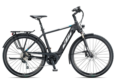 KTM MACINA TOUR 510 Herren 2020: Ideal für lange Fahrradtouren: Das KTM Macina Tour 510 Trekking-Pedelec überzeugt mit einem leistungsstarken und fein integrierten Bosch E-Antrieb, sowie einer langstreckentauglichen Komfortausstattung.KTM hat den neuen Performance Line CX Antrieb der 4. Generation, zusammen mit dem 500 Wh Power Tube Akku besonders elegant im Unterrohr integriert. Gut geschützt, fällt das E-System erst auf dem zweiten Blick auf. Das neue Top-Modell des Marktführers Bosch liefert Ihnen in der Spitze leistungsstarke 75 Nm, ist aber gegenüber seinem Vorgängermodell um nahezu die Hälfte geschrumpft. Abgerundet wird das hochwertige Bosch E-Antriebssystem mit dem großzügigen Intuvia Bordcomputer, sowie dem schnellen 4A Ladegerät. Das Schaltwerk des KTM Trekking-Pedelecs stammt aus Shimanos bewährter Deore Gruppe und liefert dem Macina Tour 510, 9 fein übersetzte Gänge. Ebenfalls aus dem Hause Shimano stammt die hydraulische