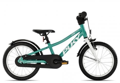 Kindgerecht konzipiert, ist dieses Puky Cyke 16 Zoll Kinderfahrrad mit vielen sicheren Details ausgestattet., Dazu verhindert der Vollkettenschutz direkten Zugriff auf den Antriebsstrang., Leicht, sicher und in typischer Puky-Qualität: Das Puky Cyke 16 mit Rücktrittbremse., Diese ermöglicht Kindern in einem Alter von ca. 4-8 Jahren (bei einer Körpergröße von 105-125 cm) sich schon früh an diese beliebte Bremsart zu gewöhnen., Lenkerpolster, Sicherheitsgriffe und Kantenschützer an den Schutzblechen, sind hier beispielhaft zu nennen., Ein sportives Design und nur gut 7, 6kg leicht: Das Puky Cyke 16 Kinderrad mit Rücktrittbremse.