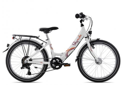 Die Bedienung erfolgt über kindgerechte Bremshebel am Lenker., Ein Selle Royal Sattel, eine Bereifung von Schwalbe und ein Shimano Nabendynamo: Das 20 Zoll Puky Kinderfahrrad wurde mit vielen wertigen Markenkomponenten gefertigt., Für einen langanhaltenden Fahrspaß und eine hohe Haltbarkeit., Das bewährte Schaltwerk wird dabei einfach und übersichtlich per Drehgriff bedient., Die 6-Gang S-Ride Kettenschaltung lässt sich auch unter Last gut durchschalten., Statt einer Rücktrittbremse ist das Skyride 20-6 mit einer Felgenbremse an der Front und am Heck ausgestattet., Ein leichter Aluminiumrahmen mit tiefem Einstieg und rundum verkehrssicher ausgestattet: Das 20 Zoll Kinderfahrrad Skyride 20-6 Alu S-Ride aus dem Hause Puky., Puky empfiehlt das 11, 5kg leichte Skyride 20-6 Alu S-Ride ab einem Alter von 6 Jahren und einer Körpergröße zwischen 122 bis 141 cm., Daher bietet sich das Skyride 20-6 eher für längere Fahrten oder Wohnorte mit etwas