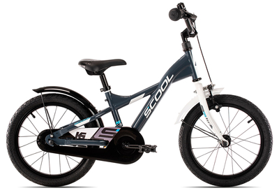 SCool XXlite steel 16: Ideal als erstes Kinderfahrrad geeignet: Das SCool XXlite steel 16. Klar, gefallen die sportiv designten XXlite Kinderfahrräder auf dem ersten Blick. Aber auch die sicherheitssteigernden Merkmale machen aus dem kleinen 16 Zoll Kinderrad das passende „ First Bike“. So verhindert der komplett geschlossene Kettenkasten den direkten Kontakt zur Antriebskette und schützt somit vor Schmutz und beugt Verletzungen vor. Auch die kindgerechten Griffe erhöhen die Sicherheit. Dank der vergrößerten Griffenden, wird das versehentliche Abrutschen der Hände verhindert. Vorne bremst eine V-Bremse und das Hinterrad wird per Rücktrittbremse verzögert. So können spielend leicht, erste Bremsmanöver erlernt werden. Ein sportlich designter und robuster Stahlrahmen, sowie kindgerecht konzipiert: Das unter 10kg leichte SCool XXlite steel 16 Kinderfahrrad bietet sich ideal ab einem Alter von 4 Jahren und einer Körpergröße ab 105 cm an.