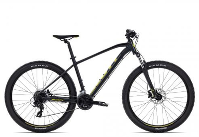 Dank der 27, 5 Zoll Laufräder zeigt sich das Scott Aspect 760 schön wendig und mit seiner soliden Basisausrüstung bietet es sich für Mountainbikesport-Einsteiger und Gelegenheitsfahrer an., Per Shimano Rapidfire-Plus Schalthebel, kannst du die insgesamt 16 Schaltstufen sportiv anwählen., Das agile Scott Aspect 760 zeigt sich als 27, 5 Zoll bereiftes Hardtail mit funktionaler Ausrüstung und bietet sich ideal für deine ersten Offroadfahrten an., Der 2-fach Antrieb zeigt einen guten Kompromiss aus Schaltbandbreite und geringem Gewicht., Zusammen mit der 2, 4 Zoll breiten Kenda Booster Bereifung und den Clarks Hydraulikbremsen lässt sich das Scott Aspect 760 MTB kontrolliert auf groben Untergründen einsetzen., Mit 100 mm Federweg dämpft die SR Suntour XCE Federgabel ordentlich auf Feldwegen und Schotterpisten., 2x 8 Gänge stellt dir die Shimano Schaltung zur Verfügung.
