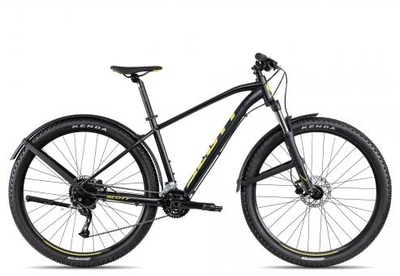 Per Shimano Rapidfire-Plus Schalthebel, kannst du die insgesamt 18 Schaltstufen sportiv anwählen., Dank der großen 29 Zoll Laufräder besitzt das Scott Aspect 950 EQ gute Überrolleigenschaften und mit seiner lockout Federgabel fährst du schneller auf Tempoetappen und am Berg., Das schnelle Scott Aspect 950 EQ zeigt sich als 29 Zoll bereiftes Einstiegs-Hardtail mit lockout-Federgabel, bereits ab Werk ausgerüsteten Schutzblechen und Ständer., 2x 9 Gänge stellt dir die Shimano Schaltung zur Verfügung., Dazu kannst du sie per lockout ganz einfach feststellen und verschwendest keine Energie in die Tauchrohre., Mit 100 mm Federweg dämpft die SR Suntour XCT Federgabel ordentlich auf Feldwegen und Schotterpisten., Das namensgebende EQ steht hierbei für „equipped“ und erspart dir direkt den Zukauf von Schutzblechen und Seitenständer., Zusammen mit der 2, 4 Zoll breiten Kenda Booster Bereifung und den Tektro Hydraulikbremsen lässt sich das Scott