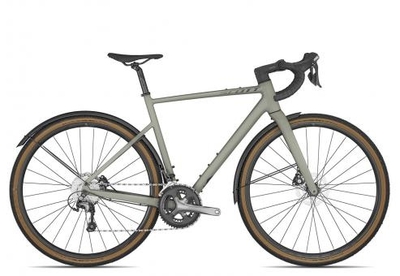 Edel-elegant und mit Shimano kompletter Tiagra Schaltung: Das Scott Speedster Gravel 40 EQ mit Schutzblechen ab Werk., Das voluminöse Steuerrohr sorgt für Lenkpräzision und die Bowdenzüge sind für eine schöne Linienführung durch den Rahmen geführt., Mechanische Scheibenbremsen lassen sich gut warten und bremsen dieses Scott Gravelbike auch bei Nässe gut ein., Leichte Syncros Komponenten sind als Lenker, Vorbau und Sattelstütze verbaut., Die Kassette stellt 11-34 Zähne zur Wahl., Der sauber geschweißte und doppelt konifizierte Aluminiumrahmen minimiert das Gewicht und bietet notwendigen Flex für deinen Komfort., Dank der EQ Schutzblechausrüstung kann es dabei auch ruhig etwas nasser zugehen., Das sportive Scott Speedster Gravel 40 EQ Gravelbike fährt mit dir zu jeder Jahreszeit souverän durch Feld, Wald und Wiese., Schwalbe G-One Reifen mit 40 Millimetern Breite bieten dank Diamantprofil selbst auf nassem Laub ausreichend Traktion und