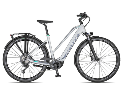 Scott Sub Sport e RIDE 10 Trapez 2020: Das Trekking E-Bike, Sub Sport e RIDE 10, aus dem Hause Scott, bietet Ihnen mit dem neuen Bosch CX Motor jede Menge Leistung für anspruchsvolle Pendlerstrecken. Die Kombination aus dem Performance Line CX Sportmotor und dem großen 625 Wh Power Tube Akku zeigt sich als leistungsstarkes Kraftpaket. Das E-Paket des Sub Sport e RIDE 10 wir abgerundet mit dem großen Bosch Intuvia Display und dem schnelleren A4 Ladegerät. Wie es sich für einen sportiven Tourer gehört, basiert dieses Scott Trekking E-Bike auf einer komfortablen Rahmengeometrie. Der Lenker lässt sich am Vorbau passend auf Ihre Wünsche feinjustieren und die ergonomischen Griffe sorgen für ein ermüdungsfreies Tourenfeeling. An der Front dämpft die 63 mm SR Suntour NEX Federgabel auf schlechten Wegen und dank der Lockout-Funktion lässt sie sich auf Tempoetappen oder am Berg ganz einfach feststellen. Die 10-fach XT Schaltung (SLX Schalthebel) und