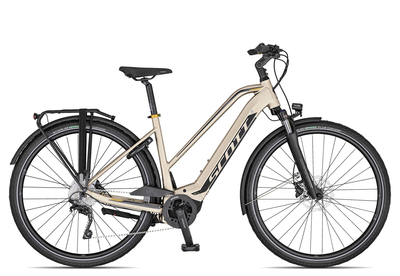 Scott Sub Tour e RIDE 10 Trapez 2020: Das Trekking E-Bike, Sub Tour e RIDE 10, aus dem Hause Scott bietet Ihnen ein Bosch Antriebssystem für enorm hohe Reichweiten. Die Kombination aus dem Performance Line Tourenmotor und dem großen 625 Wh Power Tube Akku zeigt sich als klassisches Langstreckensystem. Der Bosch Reichweiten-Assistent berechnet diesem System eine realistische Reichweite von weit über 100 km. Das E-Paket des Sub Tour e RIDE 10 wirabgerundet mit dem übersichtlichen Bosch Purion Display und dem A2 Standard-Ladegerät. Wie essich für einen Langstreckentourer gehört, basiert dieses Scott Trekking E-Bike auf einer komfortablen Rahmengeometrie. Der Lenker lässt sich am Vorbau passend auf Ihre Wünsche feinjustieren und die ergonomischen Griffe sorgen für ein ermüdungsfreies Tourenfeeling. An der Front dämpft die SR Suntour NEX Federgabel auf schlechten Wegen und dank der Lockout-Funktion lässt sie sich auf Tempoetappen oder am Berg