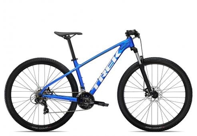 Die SR Suntour Federgabel bietet dir 100 mm Federweg an der Front (80 mm bei den kleinsten Rahmengrößen)., Ideal für MTB-Einsteiger, Jugendliche und erste Trailabenteuer: Das Trek Marlin 4 Hardtail-Mountainbike., Ab der Rahmenhöhe 17, 5 Zoll aufwärts, bekommst du das gerade Oberrohr und die 29 Zoll Laufradgröße., Die Shimano Kettenschaltung liefert dir mit ihrem gruppenreinen Tourney 3-fach Antrieb insgesamt 21 wählbare Gangstufen und die Schalthebel kommen sogar aus der Altus Baugruppe!, Passende Ã-sen und Aufnahmen lassen dich das günstige Trek Marlin 4 MTB einfach mit einem Seitenständer oder einem Gepäckträger aufrüsten., Das ermöglicht dir die Hebel auf deinen bevorzugten Griff einzustellen., Auch die Laufräder sind passend zur Gesamtgröße als 27, 5 Zoll oder als 29 Zoll an Bord., Die Shimano Altus Schalthebel und die Tektro Bremshebel lassen sich unabhängig voneinander am Lenker justieren., Das Einstiegsmodell in die beliebte Trek