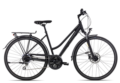 Kalkhoff Endeavour 24 LB Trapez: Das Endeavour LB 24 von Kalkhoff ist ein ideales Trekkingbike für Freizeitouren und den täglichen Pendlereinsatz zwischen den Städten. Die Shimano Kettenschaltung mit Acera 8-fach Schaltwerk bietet dir insgesamt 24 Gänge. Die breite Gangauswahl erfolgt mit Schalthebeln aus Shimanos Altus Gruppe. Bei dem Endeavour LB Trekkingrad bekommst du eine ordentliche Kombination aus Schaltleistung, Gewicht und Preis. Ebenfalls aus dem Hause Shimano stammt die hydraulische MT200 Scheibenbremsanlage. Gut dosierbar und kraftvoll verzögernd, stoppt sie das Kalkhoff Trekkingfahrrad bei jedem Wetter zuverlässig. Die komfortable, klassische Rahmengeometrie des exklusiven Endeavour LB 24 lässt dich auch längere Fahrten angenehm genießen. Der Lenkervorbau lässt sich dazu noch nach deinen eigenen Haltungsansprüchen feinjustieren. Zusätzlichen Fahrkomfort geben dir die SR Suntour Federgabel und die leichtrollende