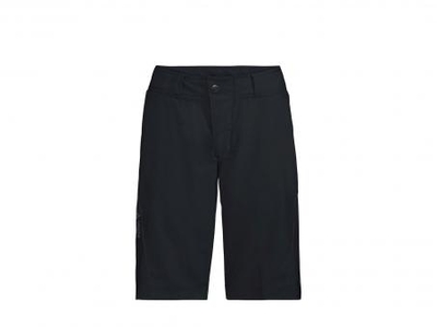 atmungsaktiv, elastisch, Bund hinten höher geschnitten und weitenregulierbar, Innenbeinlänge ca. 28 cm, regular fit, Material, Innenhose: 90% Polyester, 10% Elastan, schnelltrocknend, Gewicht: ca. 290 g, Ziernähte, Stretcheinsätze, 2 eingrifftaschen vorne, Details, Die umweltfreundlich hergestellte Ledro Damen-Shorts von Vaude, bietet einen komfortablen Sitz und dank der Stretcheinsätze besonders viel Bewegungsfreiheit., 1 Seitentasche mit Reißverschluss, inklusive Innenhose mit 8 mm Womens Active Cycling Sitzpolster, Dazu sorgt die Innenhose mit ihrem 8 mm Sitzpolster für eine extra Portion Komfort auf längeren Touren mit dem Mountainbike oder dem Trekkingfahrrad., Außenhose: 100% Polyester, Vaude Green Shabe Label zertifiziert, komfortable Radsport-Shorts