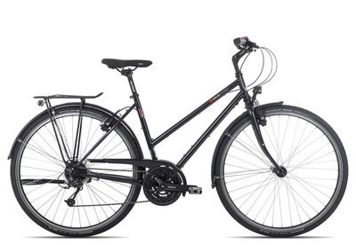 VSF T-300 Deore HS Trapez 2020: Robust und wartungsarm ausgestattet, ist das T-300 Deore HS der VSF Fahrradmanufaktur ein ideales Gefährt für den täglichen Ritt durch den urbanen Stadtdschungel oder regelmäßige Langstreckentouren. Der feine Stahlrahmen des T-300 bietet eine wunderbare Mischung aus sportlicher Steifigkeit und zeitloser Eleganz. Dank der hohen Materialfestigkeit konnten die Rohre ästhetisch schlank gehalten werden Die leichtläufige Shimano 27-Gang Kettenschaltung stammt im Wesentlichen aus der hochwertigen Deore-Gruppe und sorgt für zuverlässige Gangwechsel in jeder Lebenslage. Und bei Bedarf stoppt die extrem haltbare HS22 Felgenbremsanlage von Magura das T-300 Deore auch unter Last sicher und zuverlässig. Dank der Hydraulik wird der Kraftaufwand angenehm gering gehalten. Ergonomische Details wie der Lenker und der winkelverstellbare Octopus Vorbau von Ergotec, die Herrmans Griffe oder der Selle Royal Ariel Sattel geben dem