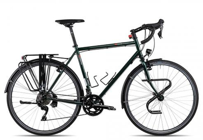 Dank Vorderrad (Lowrider)- und Hinterradgepäckträgern der Firma Tubus findet selbst umfangreiches Gepäck (Bikepacking) Platz am TX-Randonneur., Klasse Übersetzung verspricht die komplette 105er Gruppe aus dem Hause Shimano mit ihren 22 Gängen., Schwalbe Marathon Racer Bereifung auf Schürmann Alu-Hohlkammerfelgen und leichte Shimano V-Brakes sorgen für Traktion und kraftvolle Verzögerung auch bei voll beladenem Rad., Nutze die Möglichkeit und ersetze dein ein Auto durch das TX-Randonneur., Dieses Trekkingbike im Stil des klassischen Randonneurs könnte man als Vorfahre der angesagten Gravelbikes bezeichnen., Dank Leichtlauf-Nabendynamo und 70 Lux starker Busch und Müller LED-Lichtanlage (inklusive Standlicht an der Front und im Heck) bringt dich das TX-Randonneur Reiserad der VSF Fahrradmanufaktur auch in den fernsten Ländern über die dunkelsten Landstraßen., Der robuste, 2-fach konifizierte Cr Mo Stahlrahmen ist leicht genug für Sprints