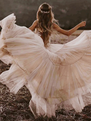 A Linie Brautkleid Nude Tönen Tüll V-Ausschnitt ärmellos A Linie Hochzeitskleid & Hochzeit > Brautkleider > A-Linie Brautkleider