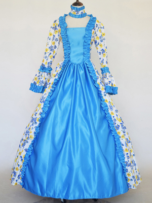 Babyblaues Retro-Kostüm für Mädchen mit Tattoo-Print Schnürung aus Satinstoff Chokerkleid Gothic-Kostüm „ Marie Antoinette“ aus dem 18. Jahrhundert & Kostüme > Kostüme > Vintage Kostüme > Damen Mittelalter Kleidung